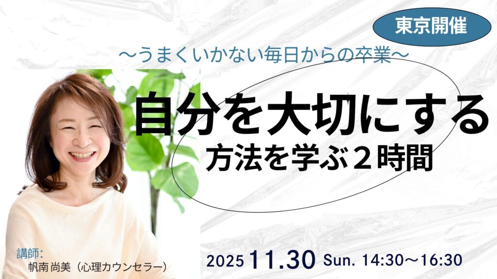 11/30東京開催ワークショップ(帆南尚美):自分を大切にする方法を学ぶ2時間