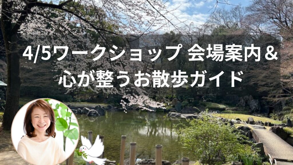 こんにちは! 今日は4/5(日)開催のワークショップ会場への分かりやすい行き方と、当日、開場(14:30)までのひとときを豊かに過ごしていただくための、私のお気に入りスポットをご紹介します。 せっかくの春の開催。「実際に行ってみないと、心からのおす... -