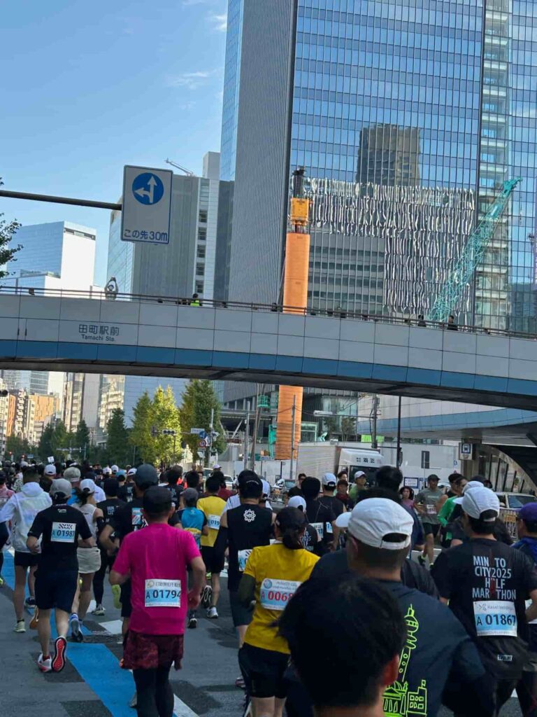 この日、夫がハーフマラソンを走ったのですが、マラソンコースのさまざまな魅力ある地点の中から、田町駅前を選んで応援しました。