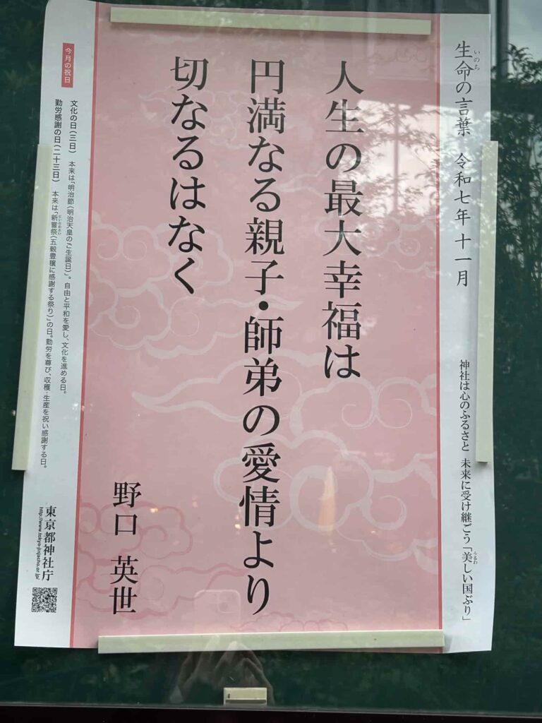 この日はいろいろと素敵な言葉にも出会いましたよ。ひとつはこちら。三田春日神社にも御穂鹿嶋神社にも掲示されていました。