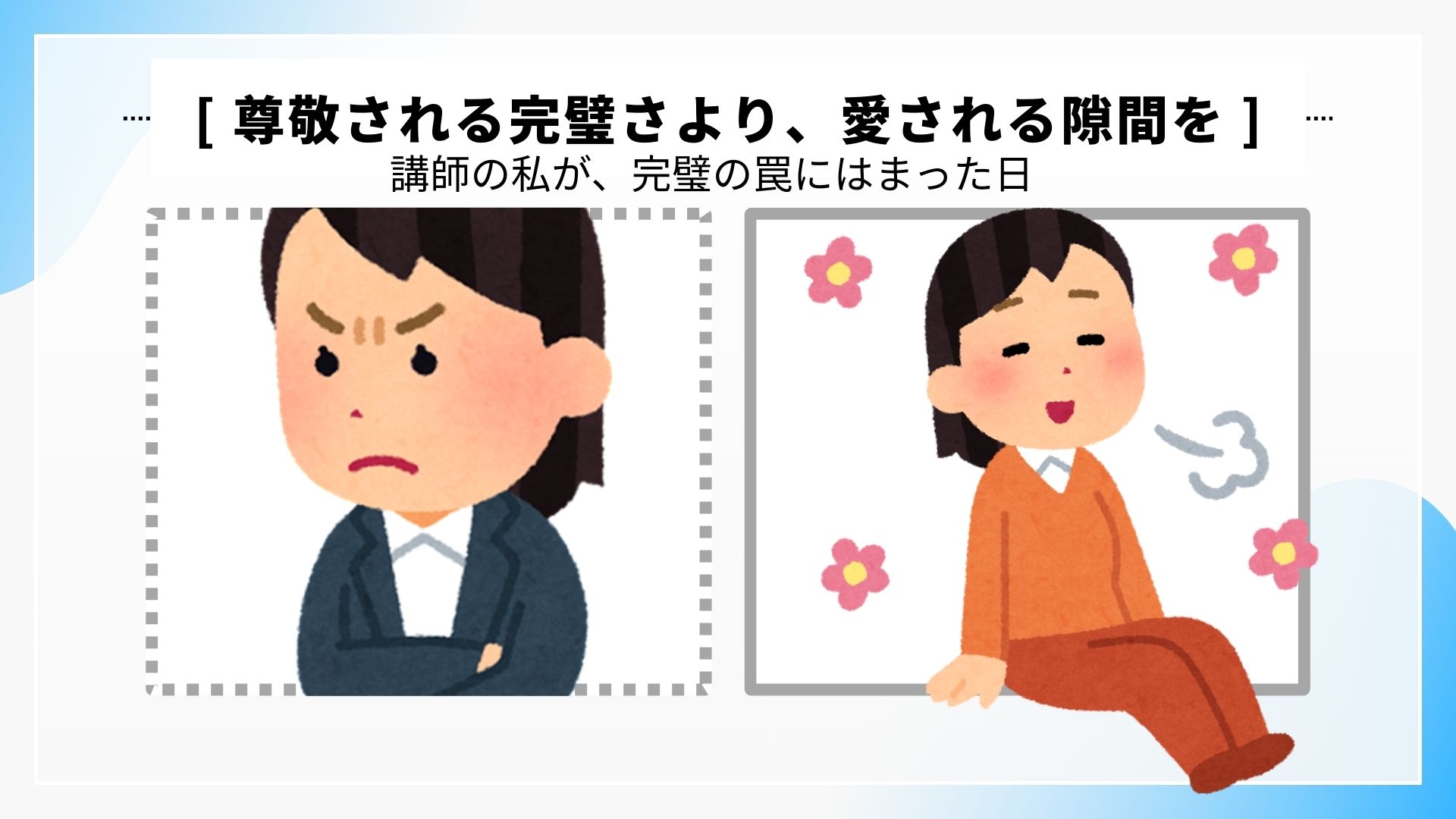 「完璧」や「正しさ」って、人から尊敬はされるかもしれないけれど、愛される隙間がないんですよね。 それよりも、失敗して「あちゃー」と言っている自分を「そんな時もあるよね」と受け入れる。それが、私がみなさんに一番伝えたかったことだった、と思い出したのです。